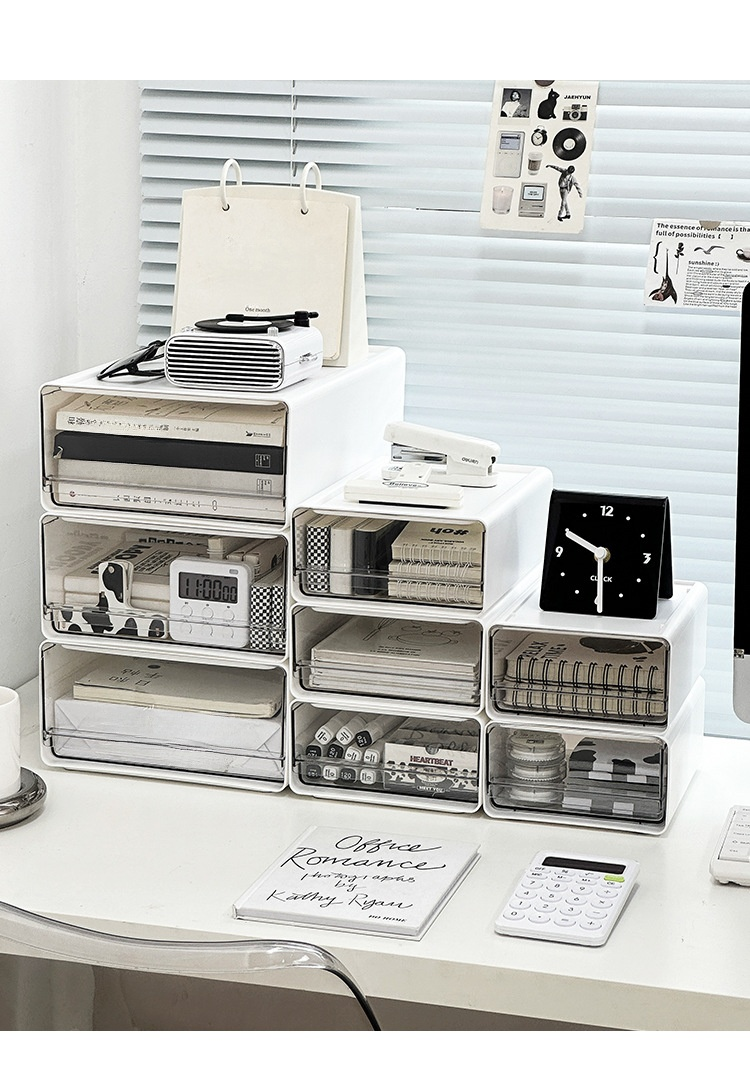 책상 조합 수납함 서랍식 투명 수납함 적층식 수납장 서재 및 사무실 수납함 저장 조합 파일 수납함