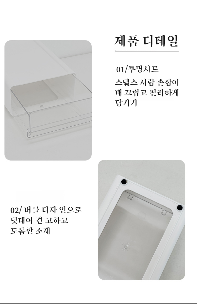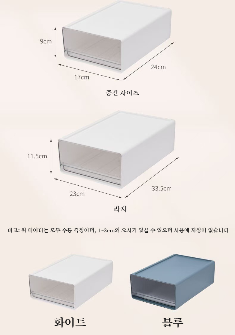 책상 위에 놓인 투명 서랍식 조합 수납함